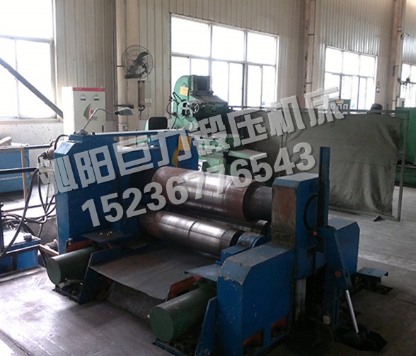 2、三個工作輥均為主動輥,上輥升降和兩下輥平移均由NC控制,確保對任何厚度的板材有良好的送進(jìn)卷制功能,且板材始終處于夾緊狀態(tài),避免板材滑動、跑偏;