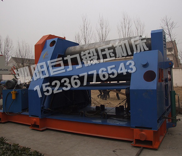該四輥卷板機(jī)與對(duì)稱三輥卷板機(jī)比較,它可以不借助其它設(shè)備模具,直接予彎板材端部,而且剩余直邊較??;它可以不使板材調(diào)頭,而卷成工件。