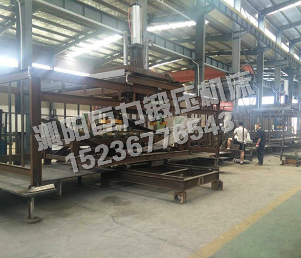 機械輔助部分包括:液壓橫向送料平臺(送進鋼板)、電磁吸盤上料部分、進料輥道部分、左右托料輥道部分、板料對正部分、出料輥道部分、電磁吸盤下料部分、液壓橫向送料平臺(送出成品)。
